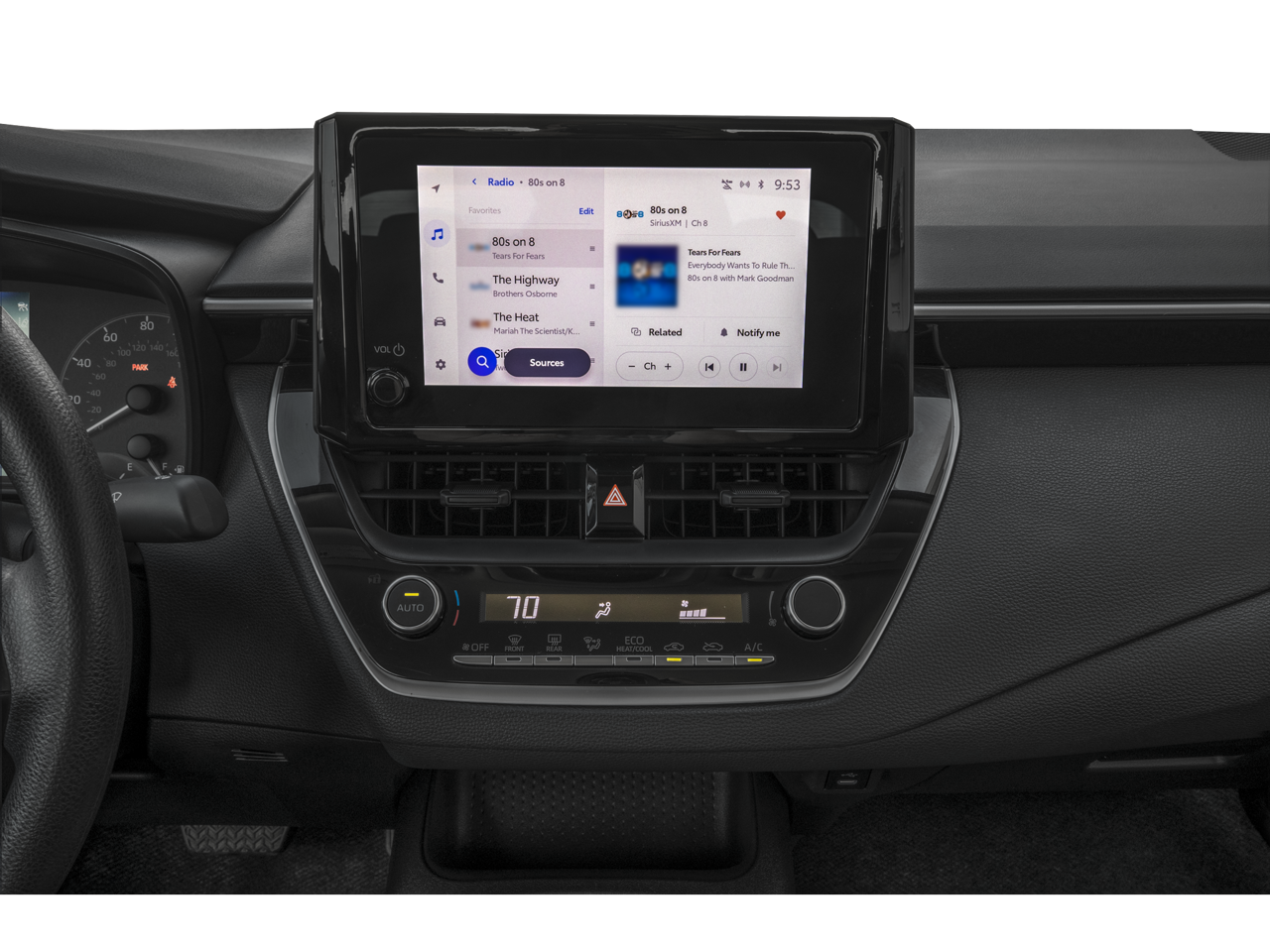 • 8-in. Toyota Audio Multimedia touchscreen with six speakers, wireless Apple CarPlay® 11& Android Auto™ 4compatibility, SiriusXM® 41 3-month trial subscription. See toyota.com/audio-multimedia for details.