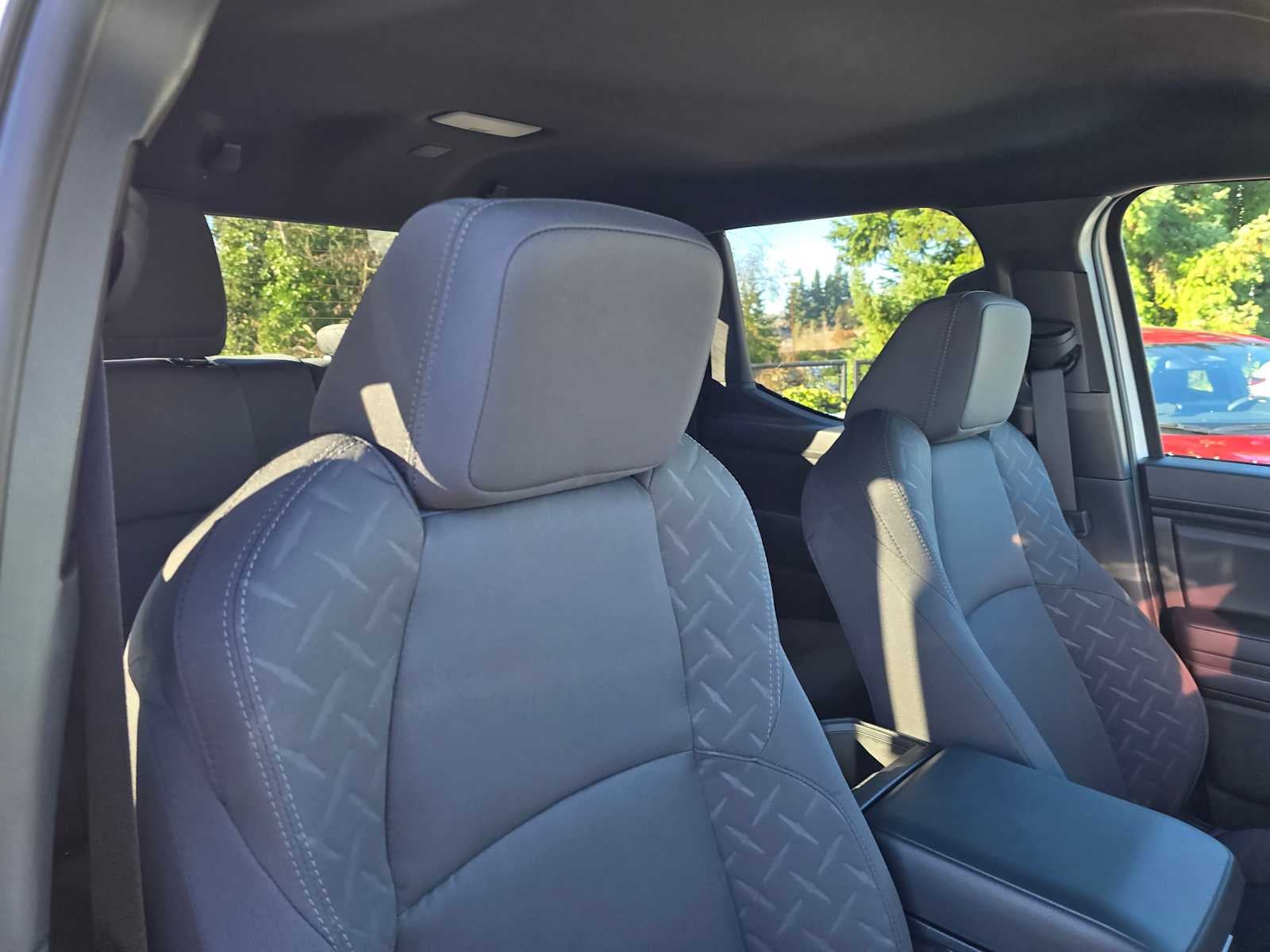 • Fabric-trimmed seats; 6-way manually adjustable driver and front passenger seats with 2-way power-adjustable lumbar support on driver's seat only
