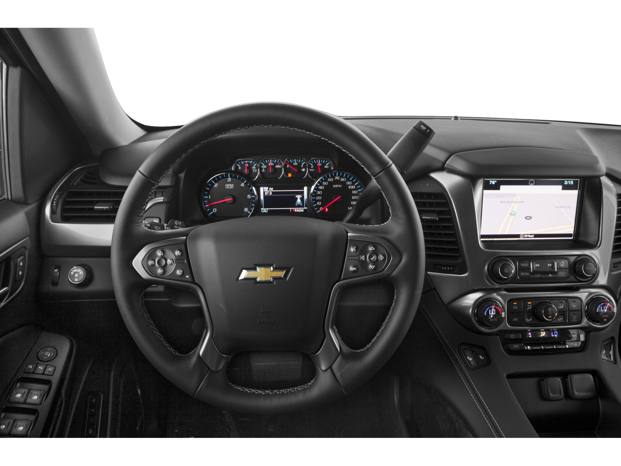 AUDIO SYSTEM, CHEVROLET MYLINK RADIO WITH NAVIGATION, AM/FM STEREO AND CD PLAYER 5 USB ports, 1 SD card reader and an auxiliary jack, ENGINE, 5.3L ECOTEC3 V8 WITH ACTIVE FUEL MANAGEMENT, DIRECT INJECTION AND VARIABLE VALVE TIMING includes aluminum block construction (355 hp [265 kW] @ 5600 rpm, 383 lb-ft of torque [518 N-m] @ 4100 rpm) (STD), TRANSMISSION, 6-SPEED AUTOMATIC, ELECTRONICALLY CONTROLLED with overdrive and tow/haul mode (STD), Leather Seats, Third Row Seat, 4x4, Power Liftgate, Rear Air