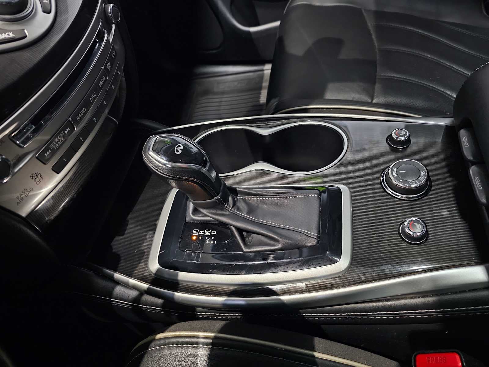 - Radio: AM/FM/CD/DVD w/Bose Premium Audio System -inc: 13 speakers, MP3 playback capability, Radio Data System (RDS), speed-sensitive volume control, INFINITI controller, auxiliary audio/video input jacks in front center console, 3 USB charging ports: rear console-mounted (1x) and 3rd row (2x), INFINITI InTouch w/8" WVGA color touch-screen vehicle information display, Bluetooth® hands-free phone system, hands-free text messaging assistant, streaming audio via Bluetooth® wireless technology, INFINITI voice recognition for audio, Bluetooth® and vehicle information including music search by voice, 2 USB ports for iPod and compatible devices, HD Radio, SiriusXM satellite radio w/3-month complimentary trial and SiriusXM Travel Link w/4 year complimentary trial access to weather, fuel prices, stock prices, sports scores and movie times