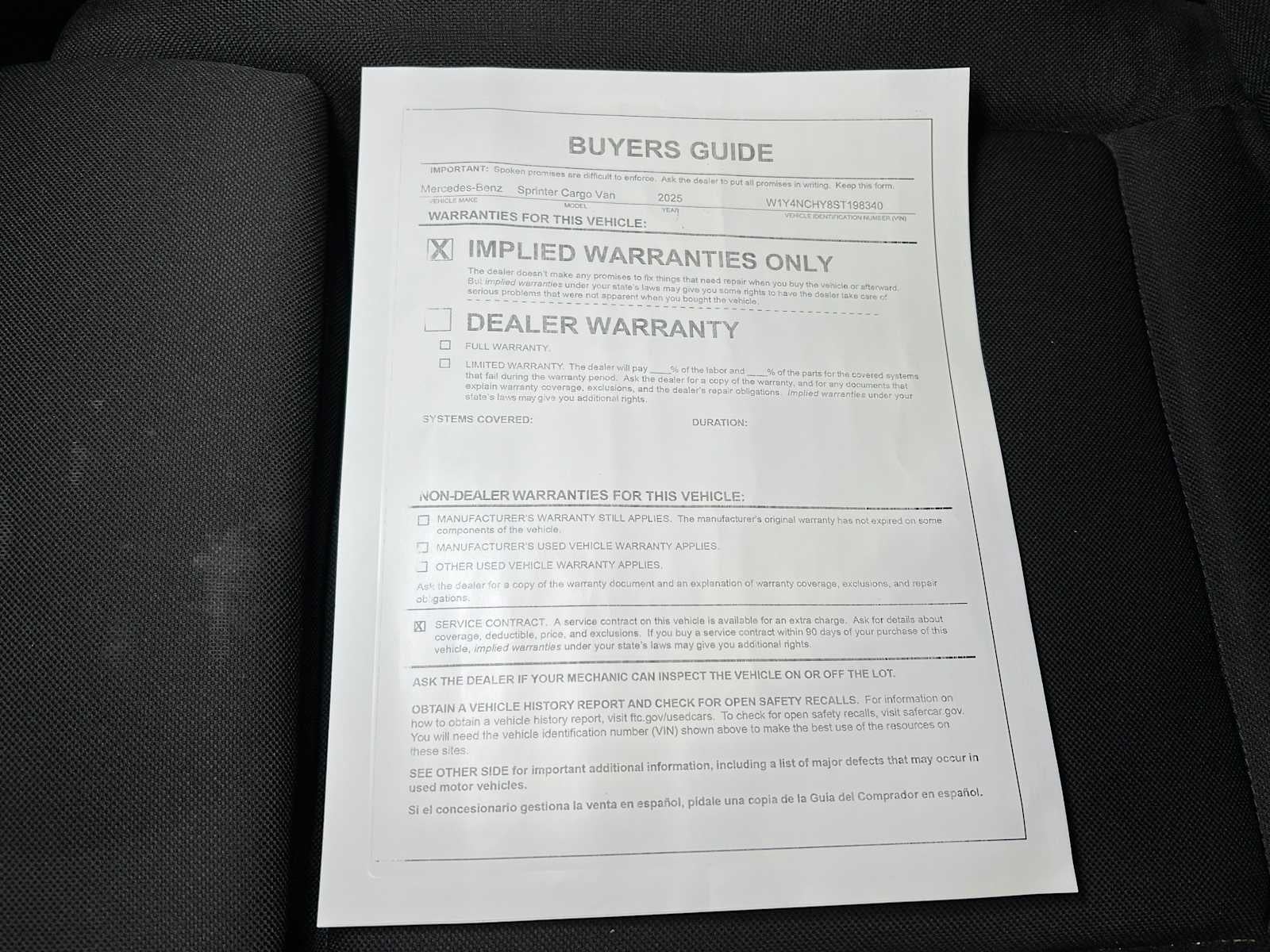 - Vehicle Name: Mercedes-Benz Sprinter Cargo Van