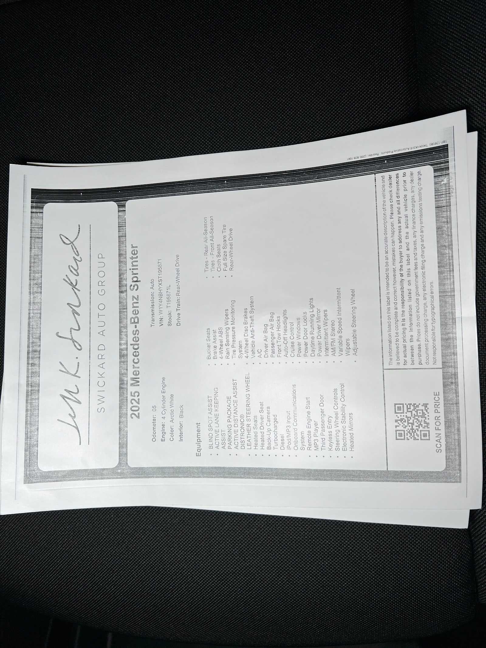 • Vehicle Name: Mercedes-Benz Sprinter Cargo Van