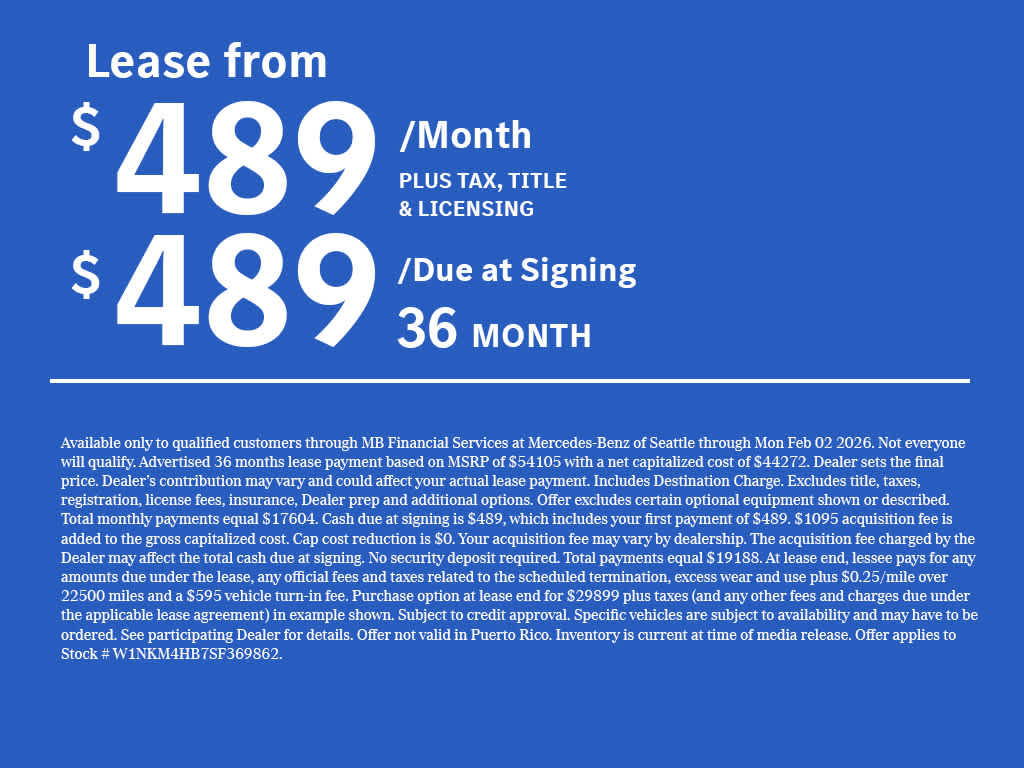 PANORAMA SUNROOF, Full-Time 4MATIC® All-Wheel, Power Liftgate, Heated Driver Seat, Back-Up Camera, Turbocharged Exchange Privilege for 7 days or 500 miles, whichever comes first, Each Certified vehicle must pass a rigorous inspection of over 165 points, 24-Hour Roadside Assistance includes trip routing, trip interruption coverage and technical help, A network of over 300 Mercedes-Benz dealers will support your Certified Mercedes-Benz, Carfax Vehicle History Report, Balance of New Car Warranty plus 1 year/unlimited miles extended Limited Warranty Welcome to Mercedes-Benz of Seattle, your local, family-owned Mercedes-Benz dealer near Bellevue, WA. We are proud to be part of the Seattle community and have called it home since 1957. At Mercedes-Benz of Seattle we are always looking for ways to give back and sponsor local schools and the rodeo. But we dont just serve Seattle. In fact, our customers visit us from Tacoma, Edmonds, Lynnwood, Kirkland and even Redmond, WA.