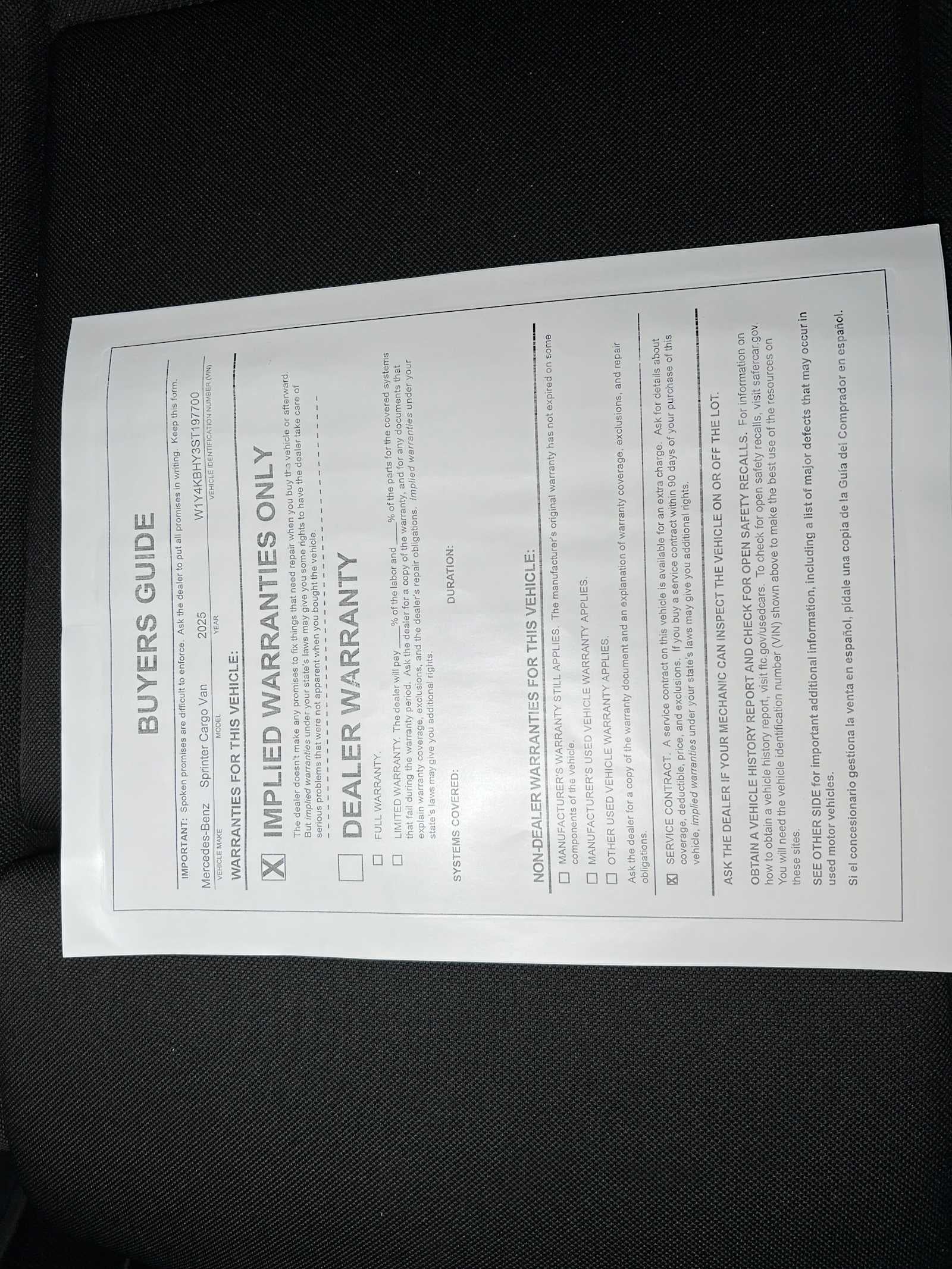 - Vehicle Name: Mercedes-Benz Sprinter Cargo Van